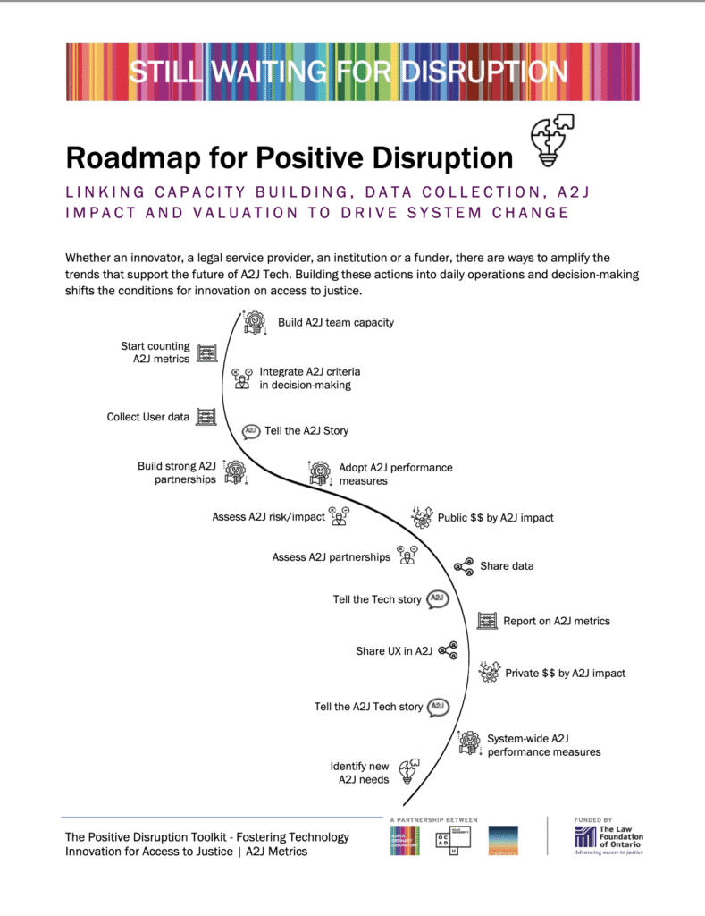 Advances in legal tech are not currently disrupting Canada’s access to justice crisis. In this project we sought to understand the barriers and opportunities for disruptive legal technology to address people’s everyday legal problems. The application of the discipline of Strategic Foresight to the justice system allowed us to examine the forces of change in the current environment affecting A2J actors and identify key levers that could be pulled now to support transformative change. The project has resulted in a se of practical tools for A2J actors.
